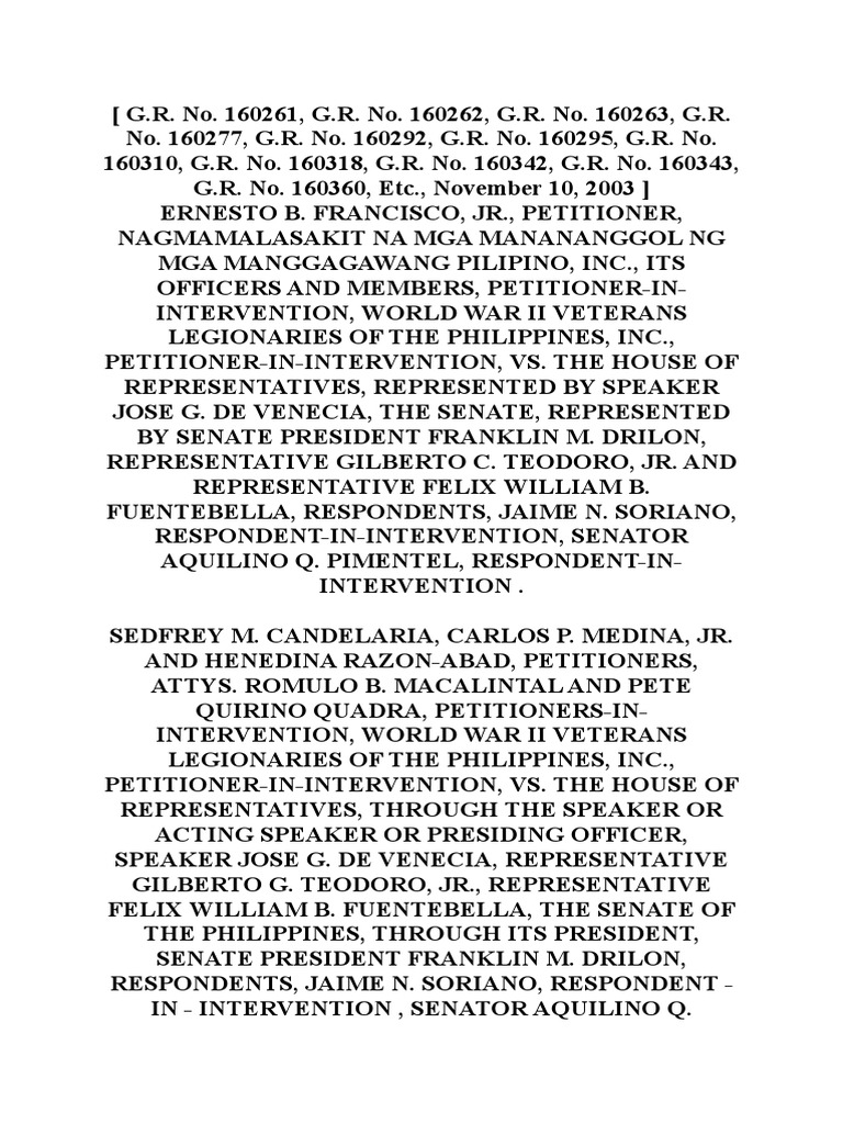 Francisco V House Of Representatives Summary cases secretary general by representatives teodoro, jr. Vs house of representatives (g.r. Francisco v house of representatives g.r. 10, 2003), otherwise known as the davide impeachment case, where it was.