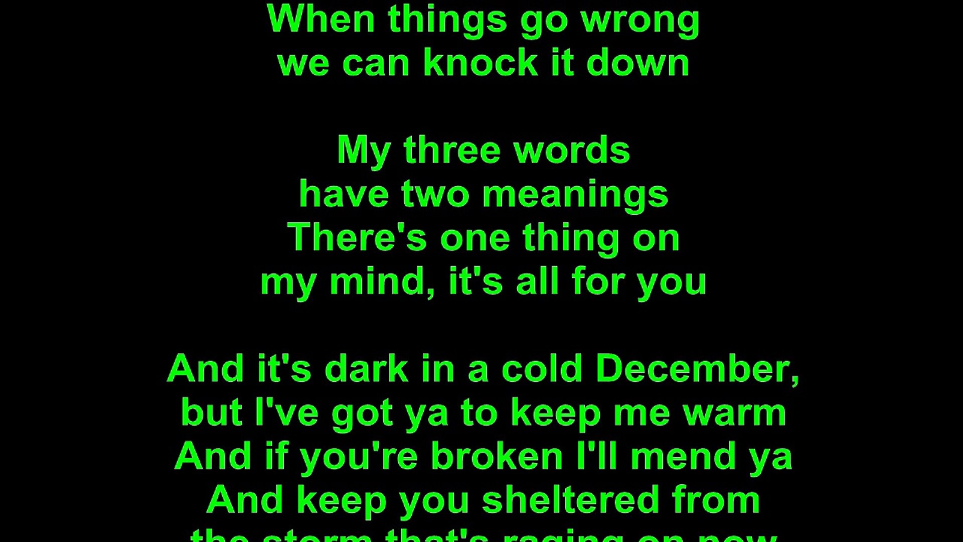 My three words have two meanings, there's one thing on my mind it's all for you.
